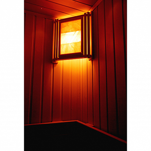 Декоративные абажуры создают рассеивающий мягкий свет в парной и предохраняют от случайного соприкосновения с горячими светильниками, а также предохраняют от излишнего попадания воды на стеклянные колбы осветительных приборов. Данная модель выполнена из липы со вставками плитки гималайской соли. Предназначен для угловой установки и совместим со всеми моделями светильников Linder и Harvia SAS21060.