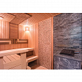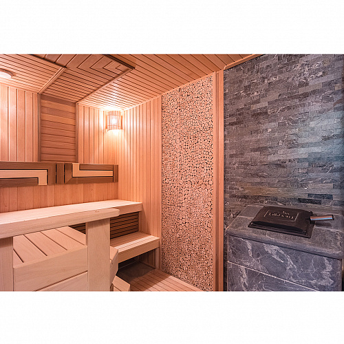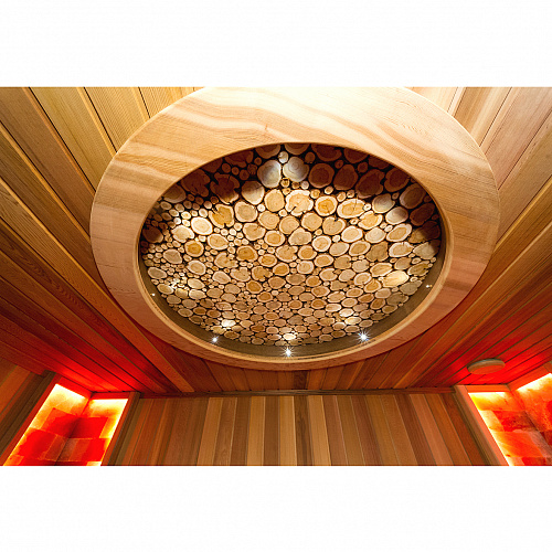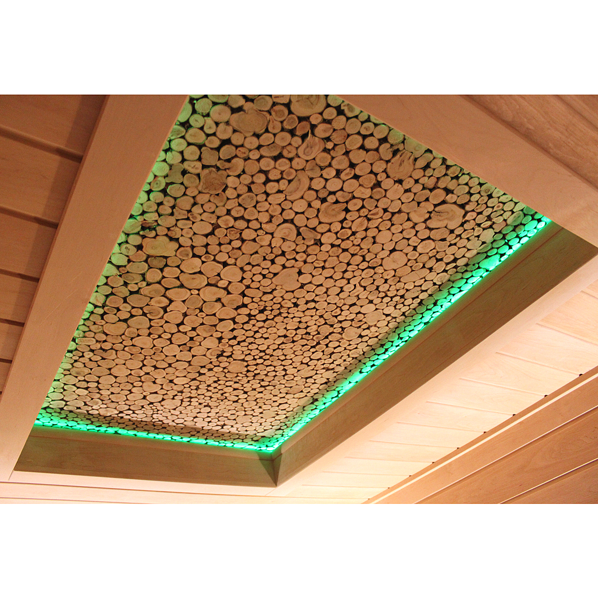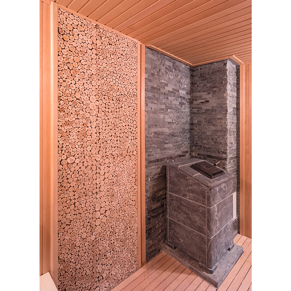 Панель из можжевельника используется при отделке парного помещения или как декоративный элемент в бане. Все зависит от полета Вашей фантазии. Пар, соприкасаясь с панелью, насыщается хвойным терпким ароматом. Можжевеловое эфирное масло обладает сильным антисептическим действием. Рисунок панели собирается из спилов ветвей можжевельника различного диаметра: как крупных спилов, так и мелких, в соответствии с художественным вкусом изготовителя.