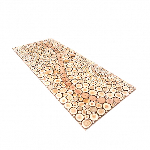 Панель из можжевельника используется при отделке парного помещения или как декоративный элемент в бане. Все зависит от полета Вашей фантазии. Пар, соприкасаясь с панелью, насыщается хвойным терпким ароматом. Можжевеловое эфирное масло обладает сильным антисептическим действием. Рисунок панели собирается из спилов ветвей можжевельника различного диаметра: как крупных спилов, так и мелких, в соответствии с художественным вкусом изготовителя.