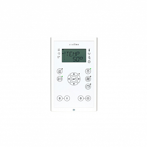 Эконом модель без подсветки экрана с вынесенным отдельно релейным блоком. Один датчик в комплекте. Возможность отложенного включения и выключения. Управляет температурой в уровнях, длительностью работы, освещением и вентиляцией.