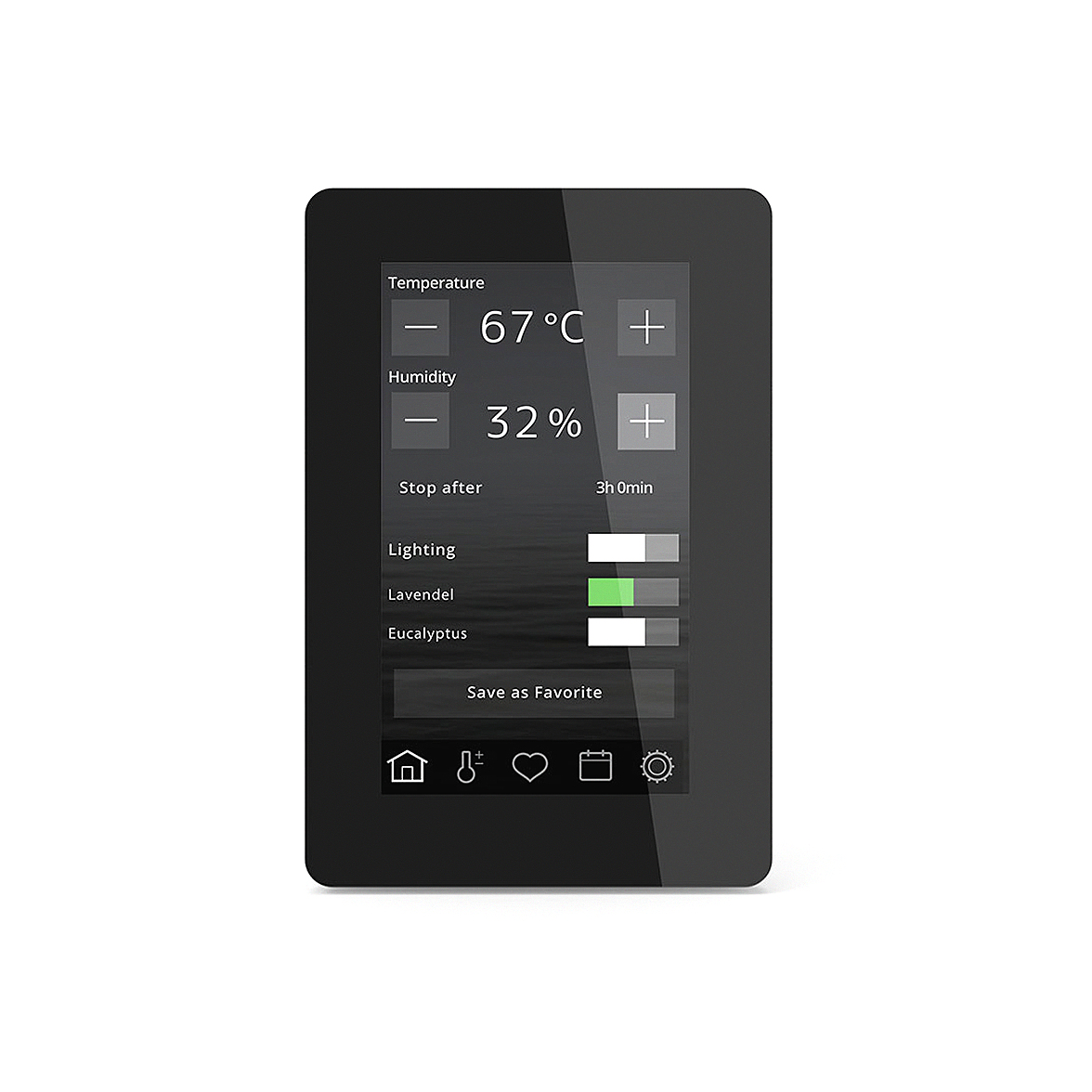 Сочетание элегантности, простоты и богатого функционала. Может управлять печами или парогенератороми Tylo, а также сопутствующим оборудованием.
