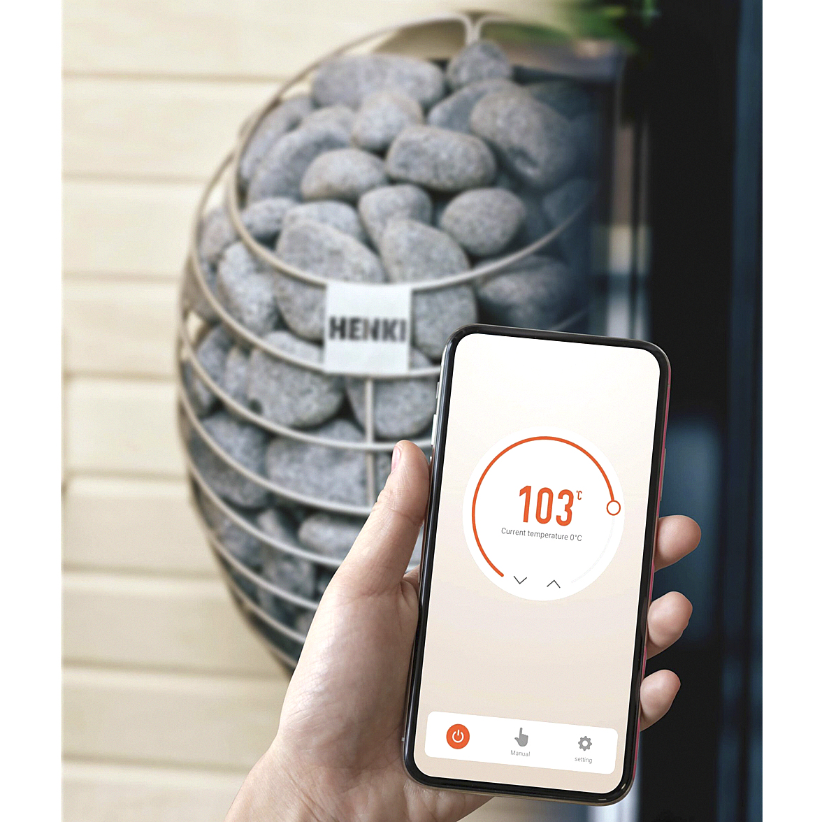Вы можете нагревать сауну с панели управления на месте или со своего мобильного телефона, независимо от того, где вы находитесь в данный момент. Приложение на телефоне позволяет вам легко установить время начала и окончания нагрева, заданную температуру и проверить текущую температуру в сауне. Пульт управления для бани и сауны позволяет интегрироваться в систему умного дома и работать по Wi-Fi. Кроме того, вы получите уведомление, когда сауна нагреется и будет готова к использованию.
