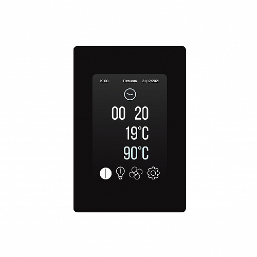Простой в использовании сенсорный пульт управления BORN умеет управлять температурой в сауне (до 110С), яркостью освещения и мощностью вентиляции.