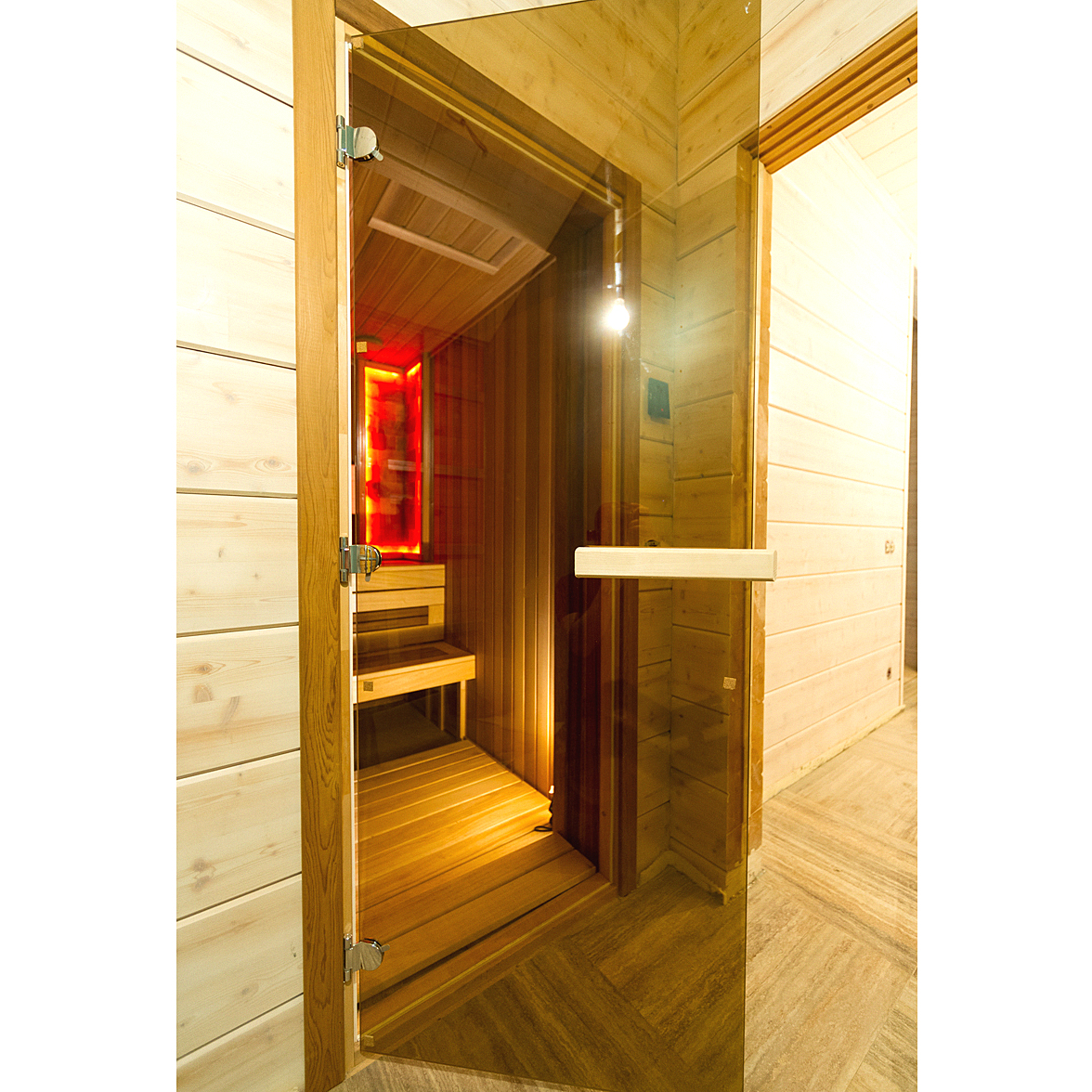 А это огромный плюс в дальнейшей эксплуатации парной. Компания Maestro Woods выпускает свои двери исключительно в ольховой коробке с порогом и использует безопасное 8 мм закаленное стекло на трех петлях.