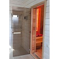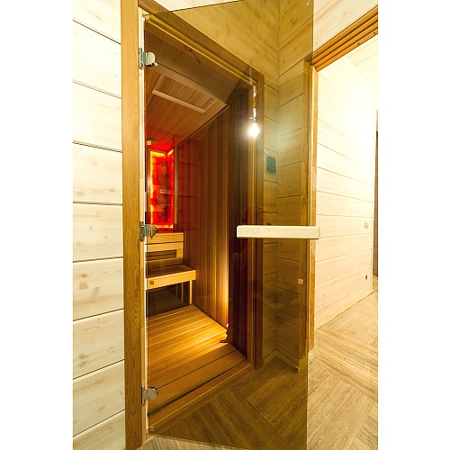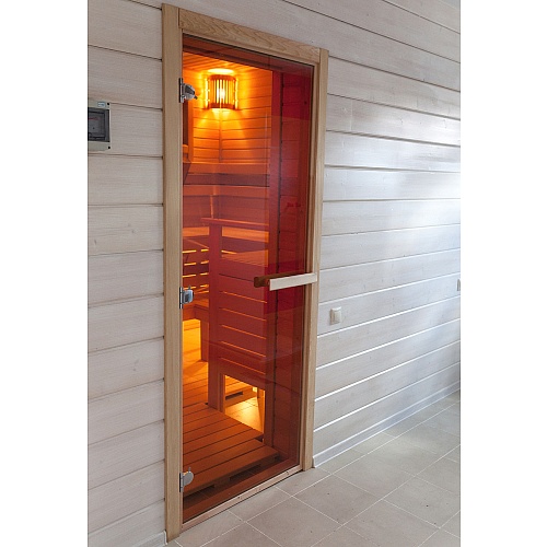 Стеклянные двери для сауны, в отличие от деревянных, не подвержены рассыханию или изменению своей геометрии из-за постоянного изменения температуры и влажности.