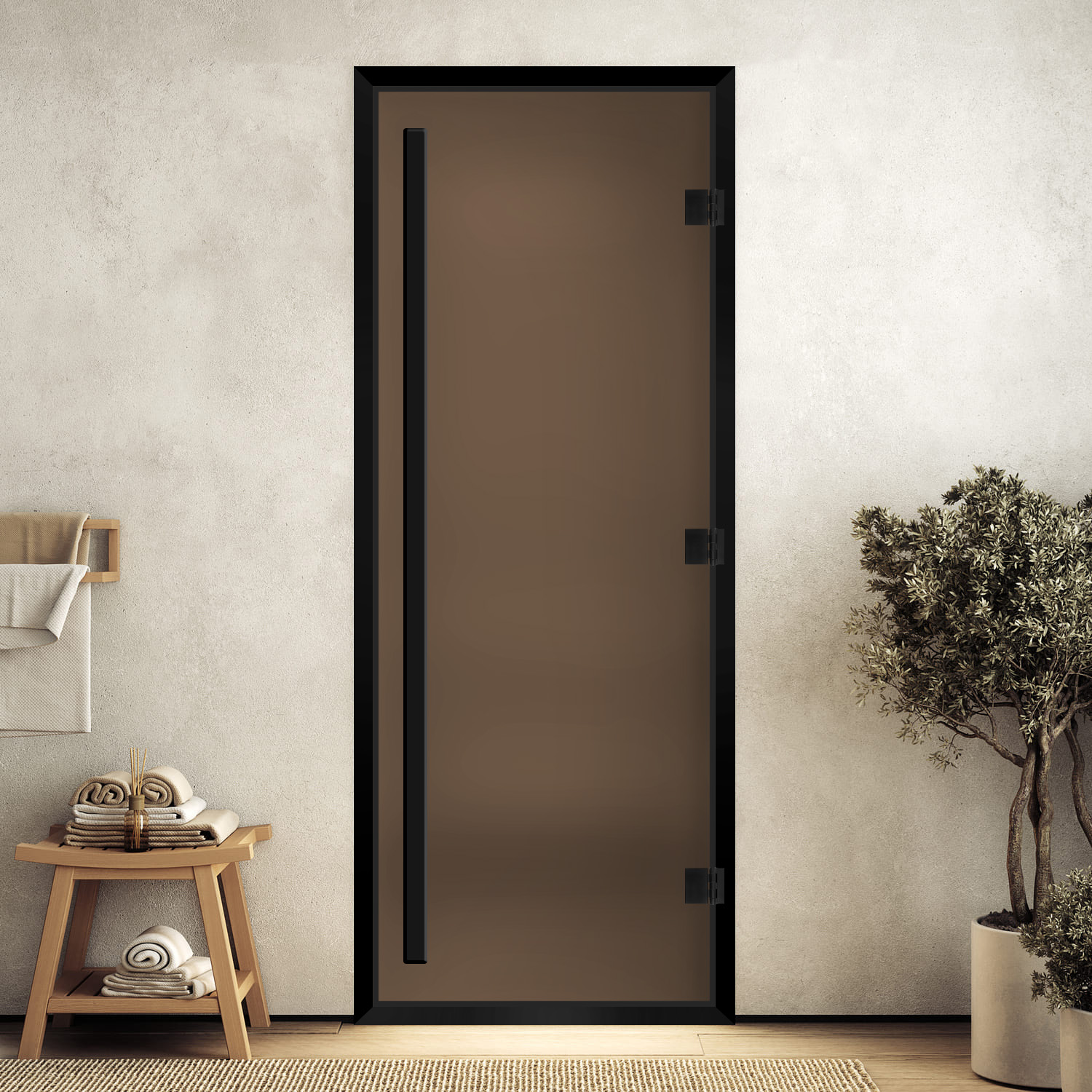 DoorWood Дверь «Хамам престиж бронза матовая» в черном профиле