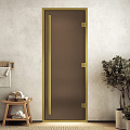 DoorWood Дверь «Хамам престиж бронза матовая» в золотом профиле