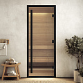 Арт. 0099129. Дверь "Хамам престиж прозрачное" в черном профиле 2100*700.