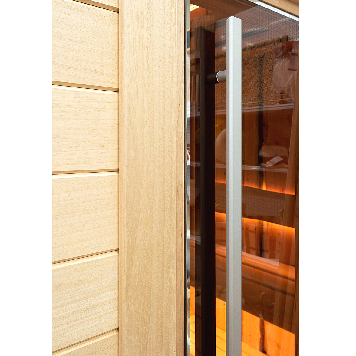 Стеклянные двери для сауны, в отличие от деревянных, не подвержены рассыханию или изменению своей геометрии вследствии постоянного изменения температуры и влажности.
