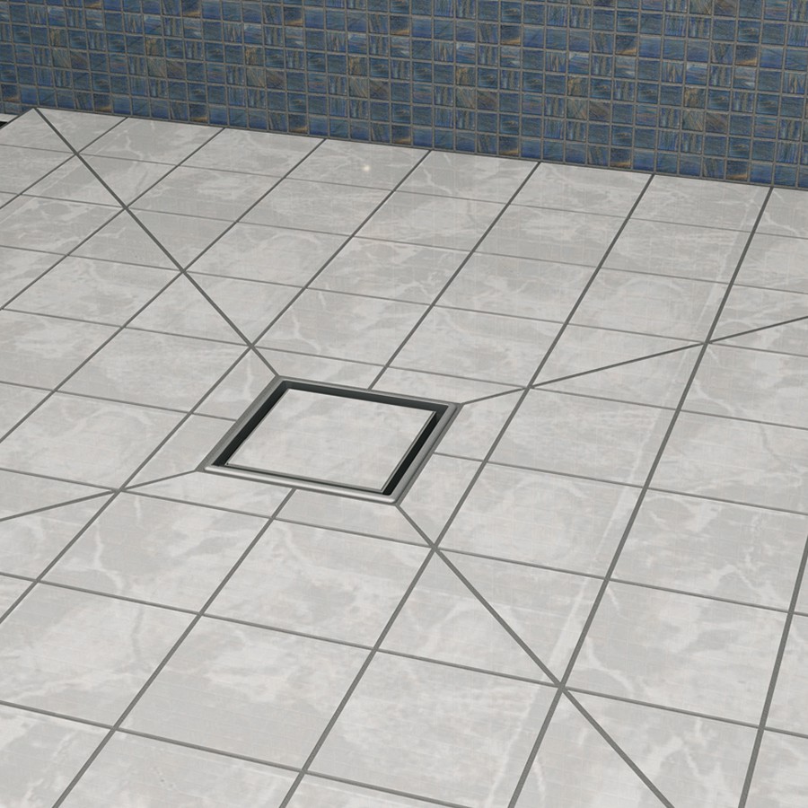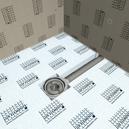 TUB-EQ — душевой поддон из жестко-вспененного полистирола, квадратной формы, со встроенным и уплотненным каркасом для установки слива на уровне пола.