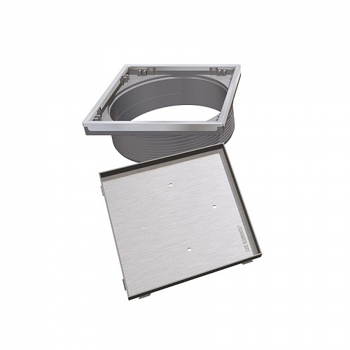 Приспособлена для скрытого расположения слива. В стальной карман вставляется нужная плитка, и слив становится незаметным. Изготовлена из нержавеющей стали. В комплекте пластиковый каркас. Конструкция каркаса позволяет укорачивать его до нужного размера. Размер рамки каркаса: 132×132 мм. Размер решетки: 110×110 мм.