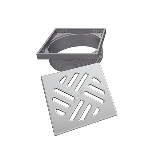 Решетка изготовлена из нержавеющей стали. В комплекте пластиковый каркас. Конструкция каркаса позволяет укорачивать его до нужного размера. Размер рамки каркаса: 130×130 мм. Размер решетки: 120×120 мм.
