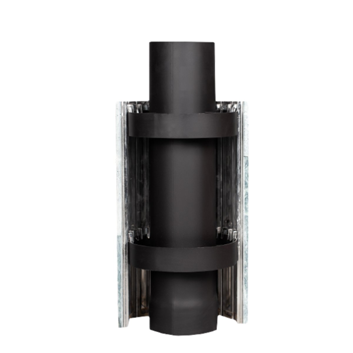 Декрон-это декоративный модуль, предназначенный для эстетического завершения системы дымоходов, установленный после специального дымохода перед потолочно-проходным узлом.