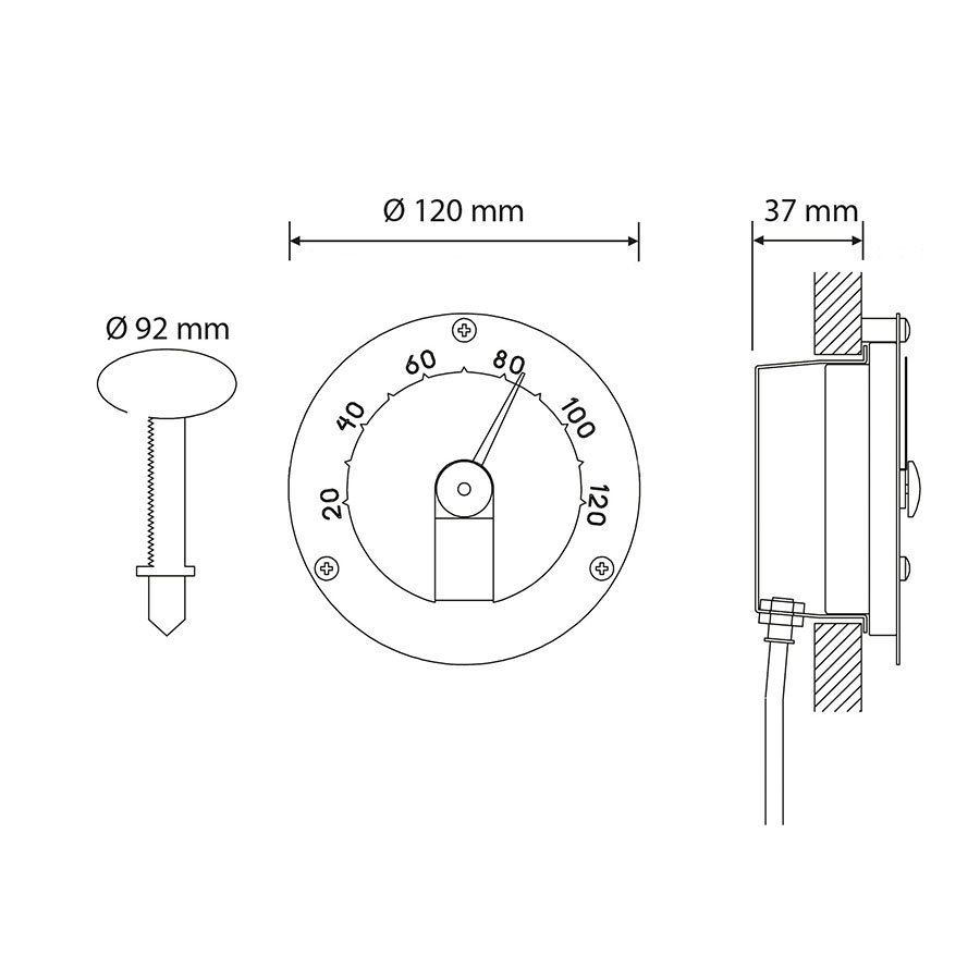 Глубина ниши для установки 40 мм. Выступает над поверхностью обшивки на 20 мм. Крепится к стене тремя винтами из нержавеющей стали, входящими в комплект.