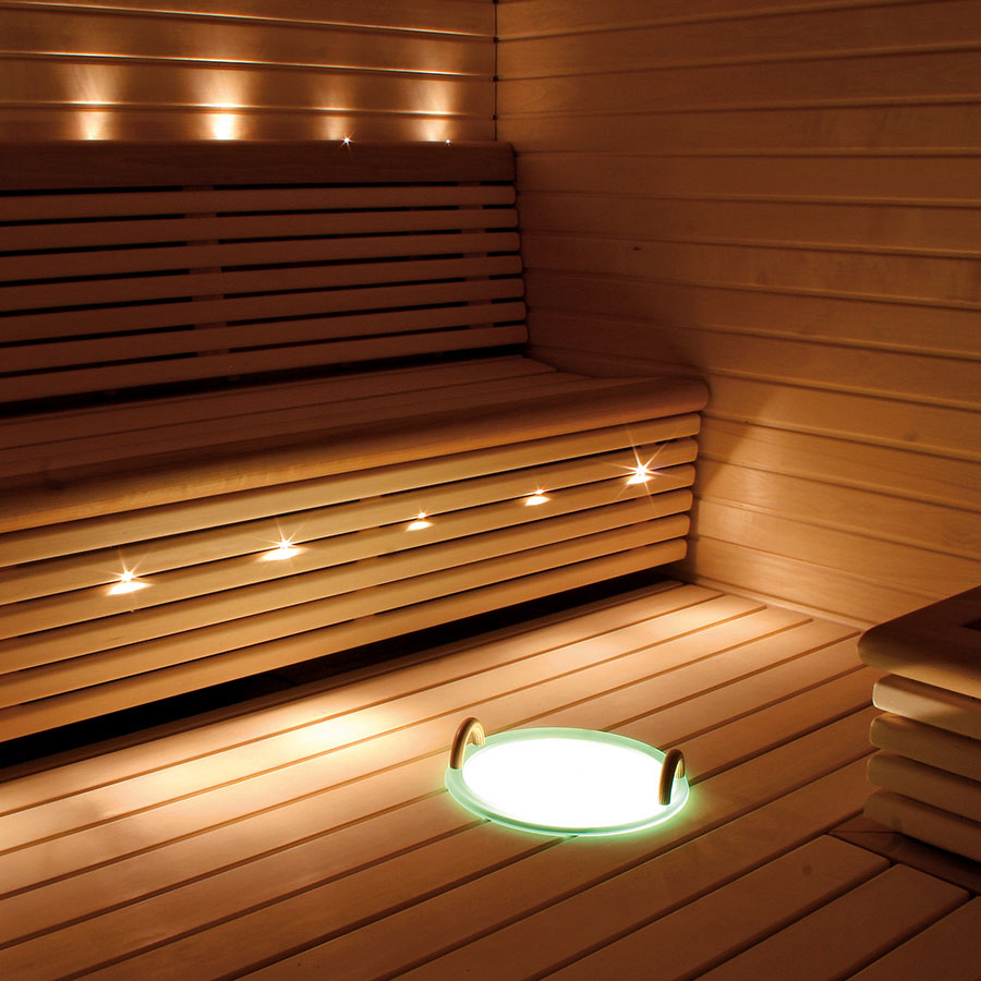 Уникальное сочетание резервуара для воды и светильника для бани и сауны. Доступна в исполнении с ручками, водосливным отверстием или клапаном.