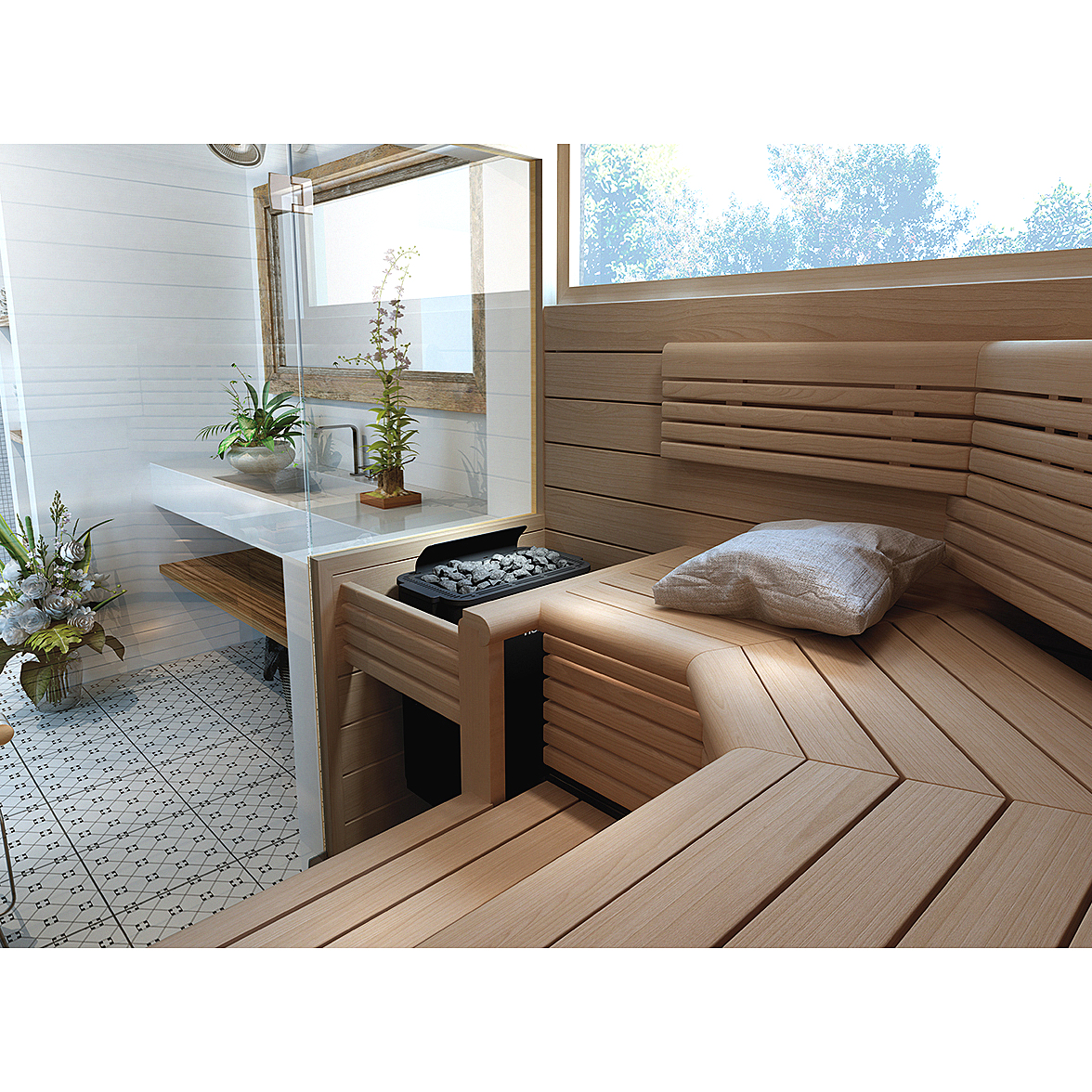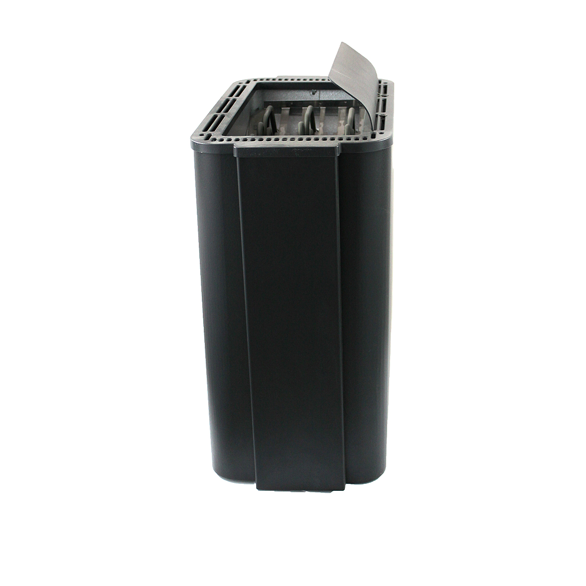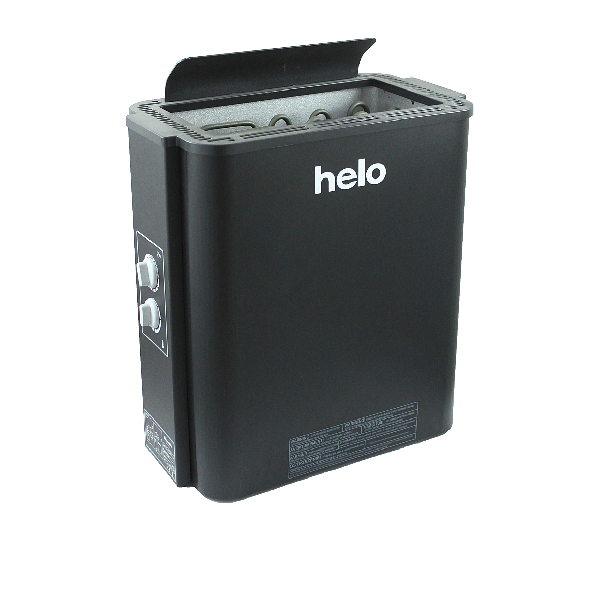 - Трехуровневое отделение вмещает 20, 28 или 35 кг камней. Небольшое количество камней обеспечивает быстрый нагрев и эффект сухой финской сауны, а большая масса — более мягкий пар.