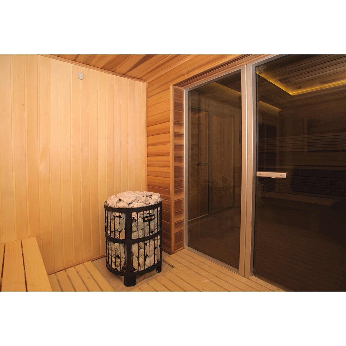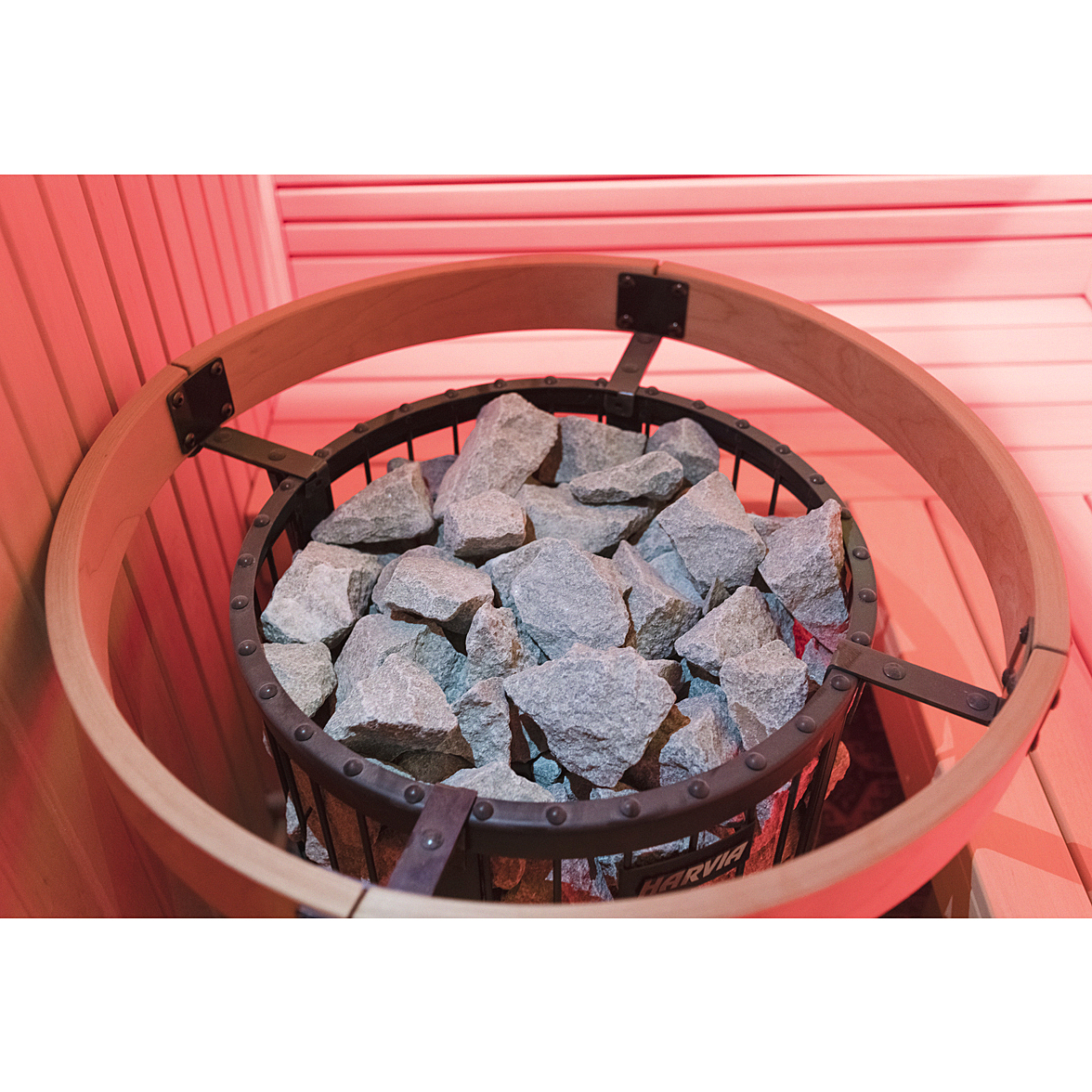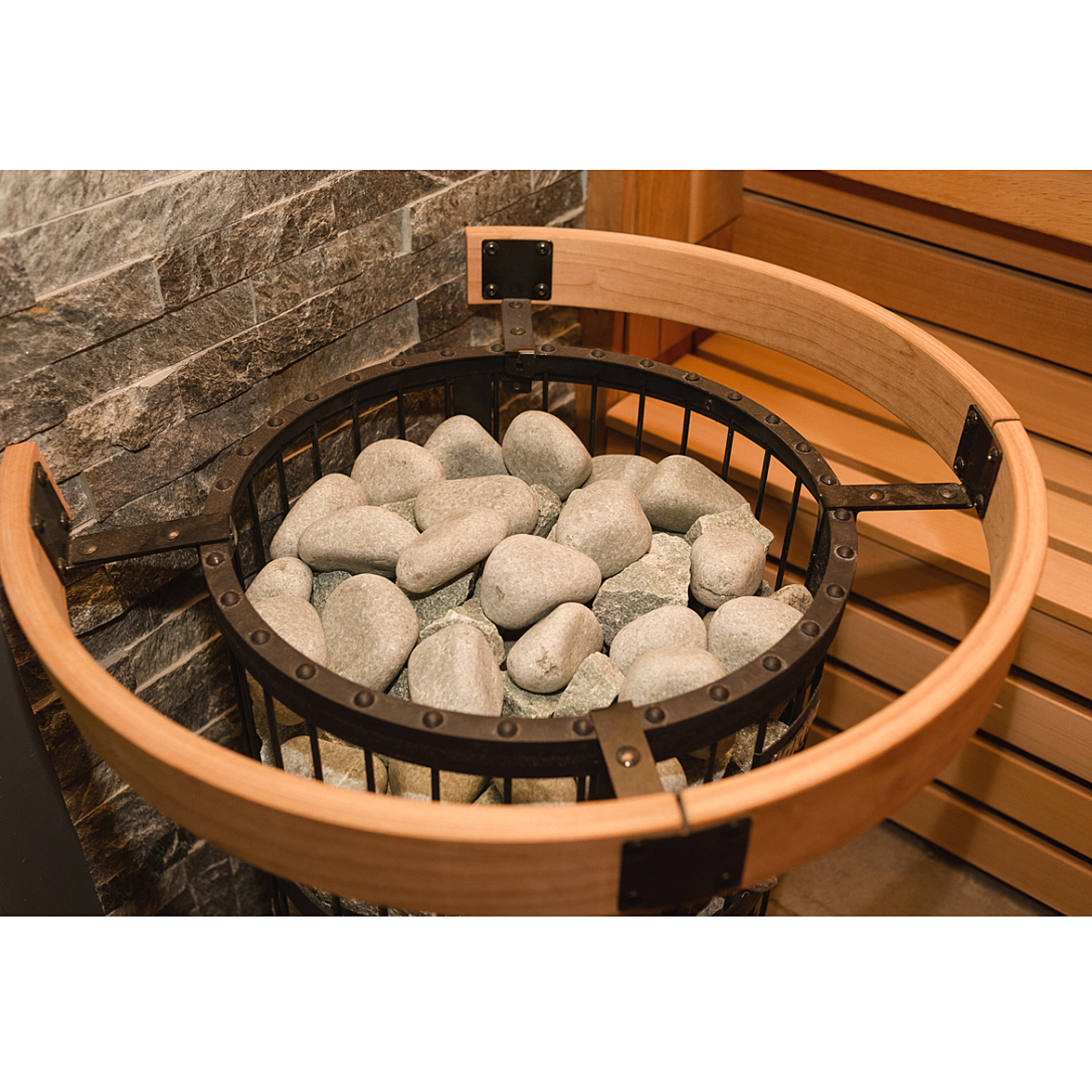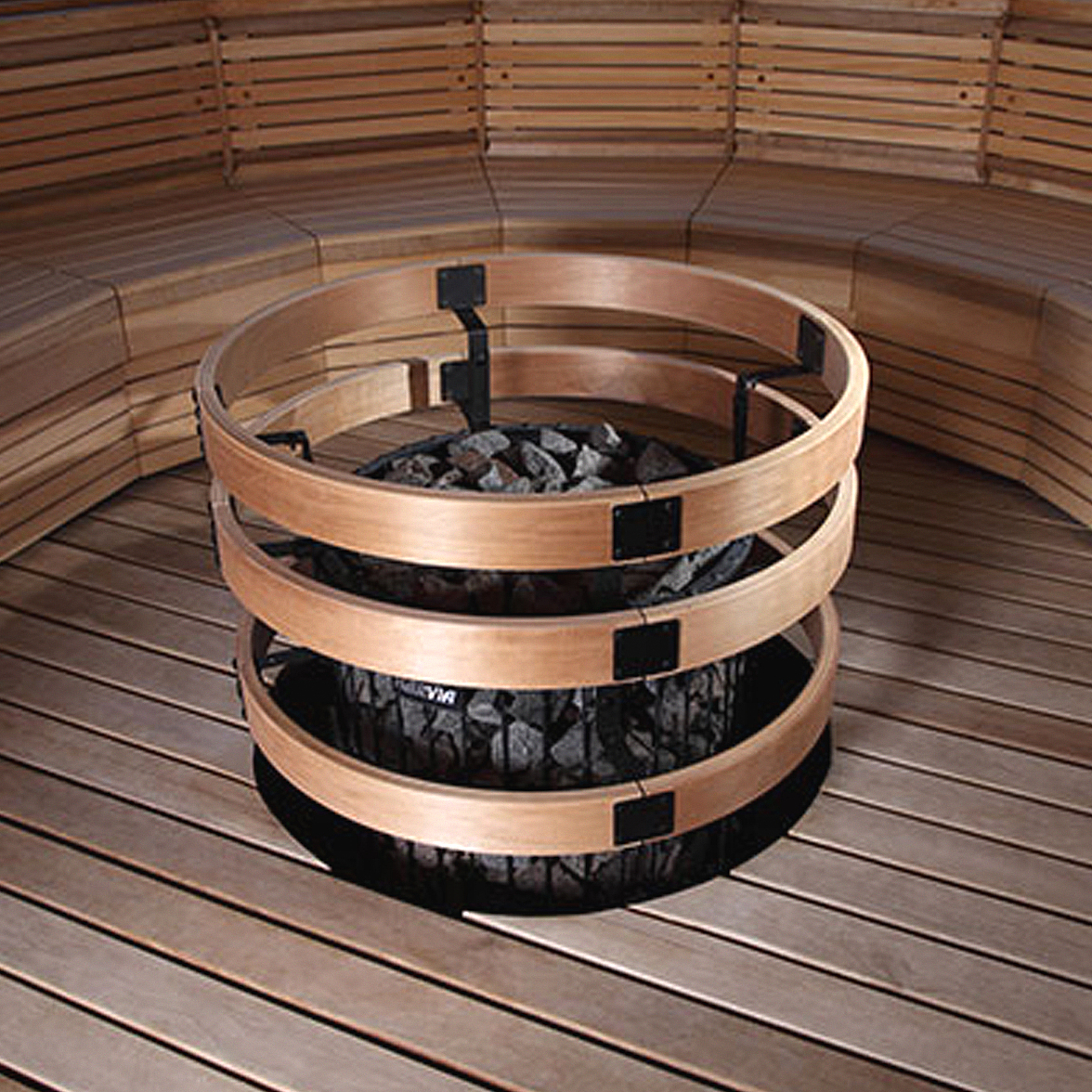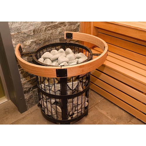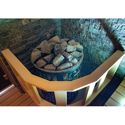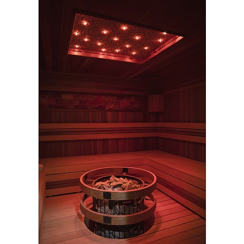 Установка: Благодаря округлой форме, печь можно установить в центре сауны или встроить в пол.