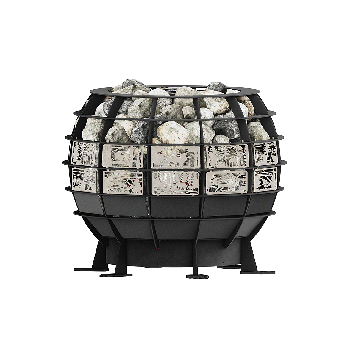 Низкое расположение дна каменки с интегрированными ТЭНами эффективно прогревает нижние слои воздуха и пол.