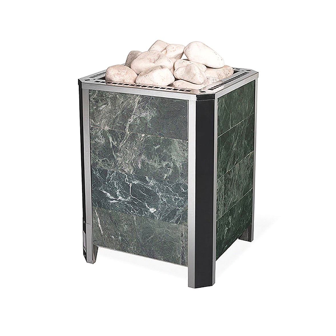 Печь "Премьера М" сочетает в себе эстетику натурального камня и оптимальные тепловые характеристики. Облицована экологически чистым натуральным камнем — талькохлоритом, серпентинитом или змеевиком, что обеспечивает стабильное и мягкое тепло.