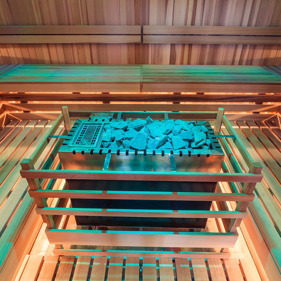 Нагревательные элементы и отсек для камней отделены друг от друга. Это предохраняет ТЭНы от возможных повреждений и делает их более долговечными.
