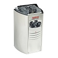 Vega Compact легка в обращении, потому что ее переключатели удобно расположены в верхней части корпуса. Каменка может быть установлена очень низко на стену парилки, что позволит прогревать также и нижние полки сауны.