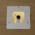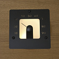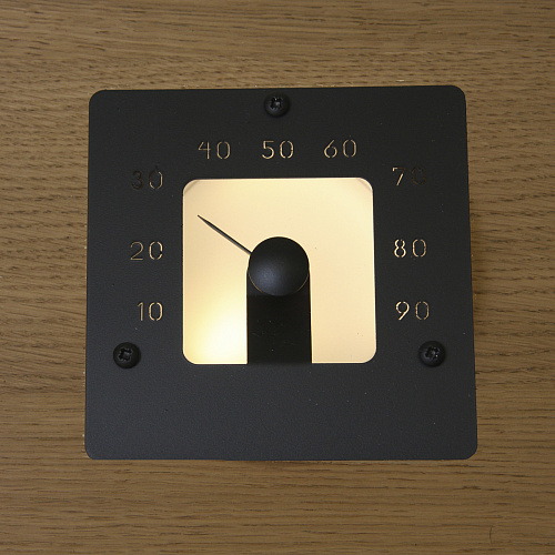Устанавливается при обшивке сауны. Размер термометра 120×120 мм, глубина ниши для установки 40 мм. Выступает над поверхностью обшивки на 20 мм.