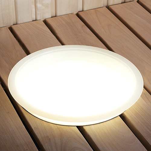 Шайка с подсветкой от Harvia — это современный и стильный способ доставки воды и света в сауну. Основание шайки можен быть установлено на поверхность полка, или же шайка может быть встроена в полок. Светодиодный светильник в основании равномерно освещает шайку, а шайка окружающее пространство — она изготовлена из оптического пластика с оптимальным рассеиванием света. Шайку легко извлечь из основания, чтобы наполнить водой или почистить. Так как основание это отдельный модуль, то электрические компоненты источника света защищены от воды.