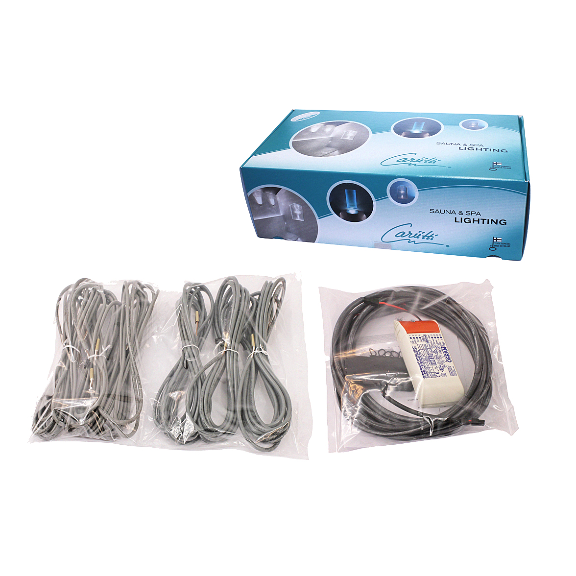 Cariitti предлагает для освещения паровой бани светодиодный комплект, который можно дополнить различными хрустальными насадками, настенными или потолочными светильниками, или жгутом на 75 волокон.