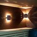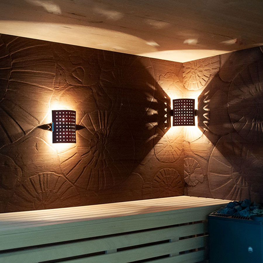 Светильник для сауны Vela 1 подойдет для настенной и угловой установки. Выгнутая деревянная поверхность украшена сквозным узором. Поверхность двусторонняя: темная с одной стороны и светлая с другой. Вы сможете выбрать нужную при установке.