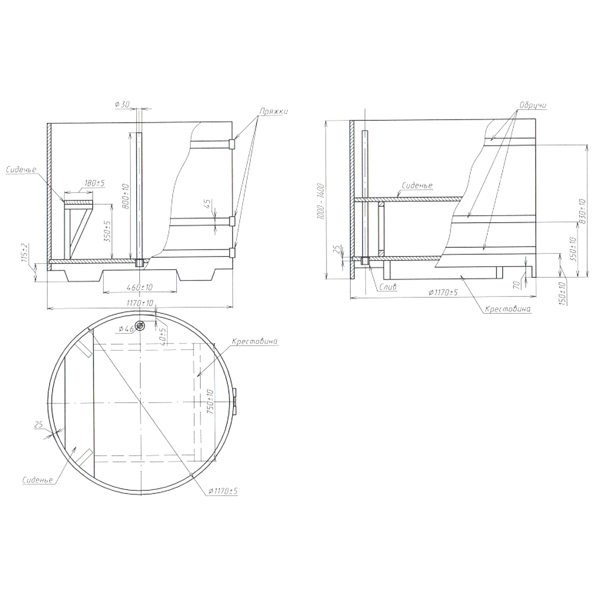 Купель BentWood Круглая, лиственница морёная D=1,17 H=1,0 м