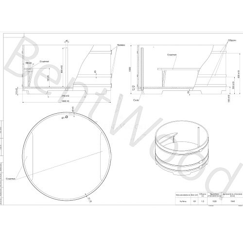 Купель BentWood Круглая, лиственница натуральная D=1,17 H=1,0 м