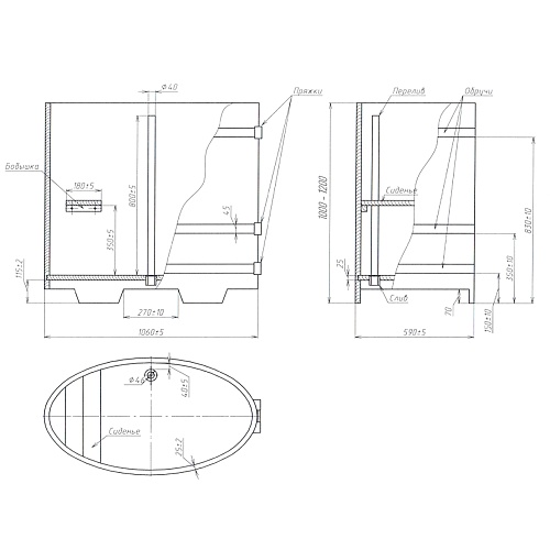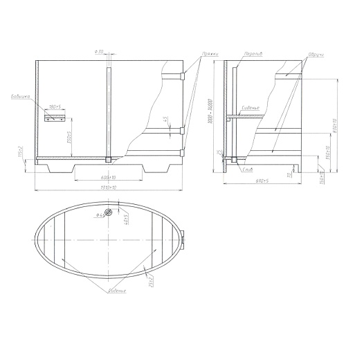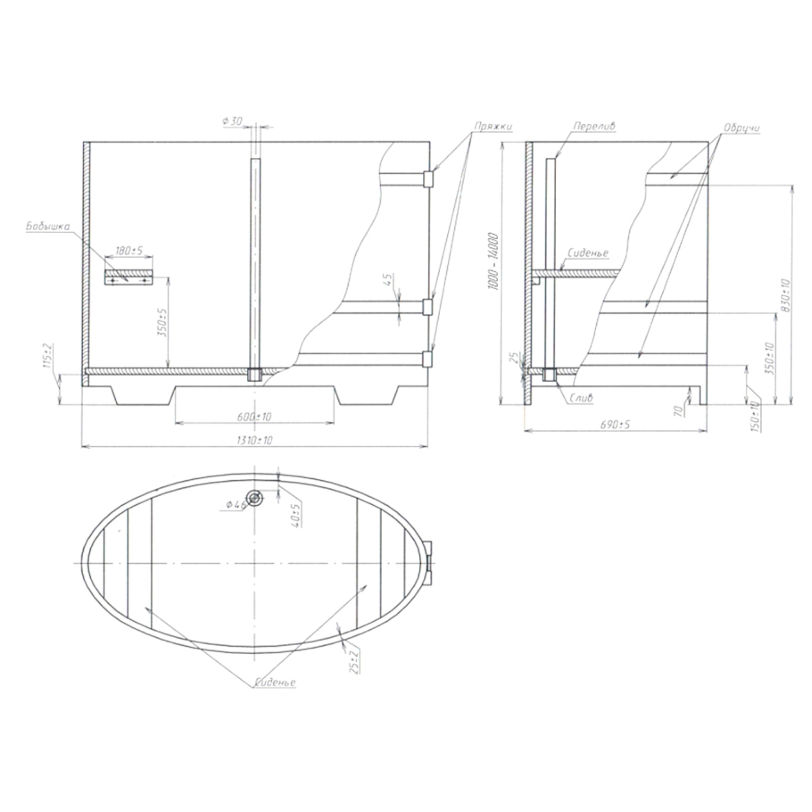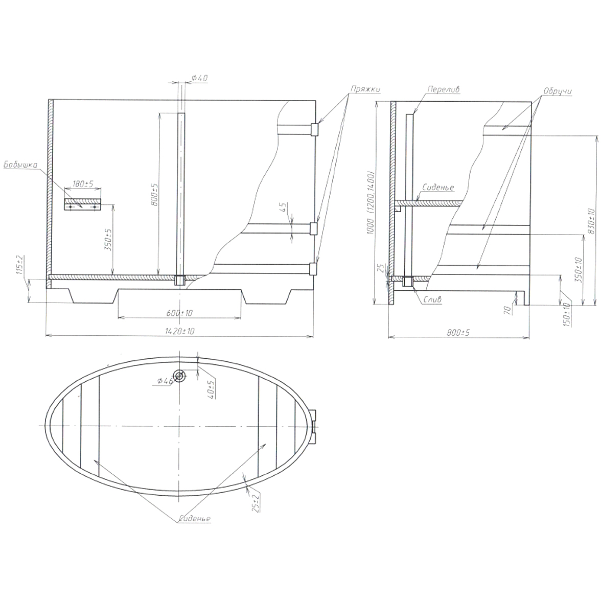 Купель BentWood Овальная, лиственница натуральная 0,59×1,06 H=1,0 м