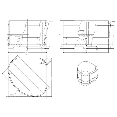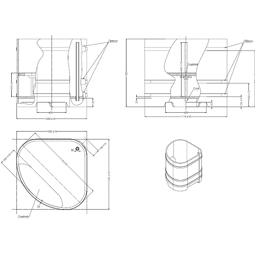 Купель BentWood Угловая, лиственница натуральная 1,03×1,03 H=1,0 м