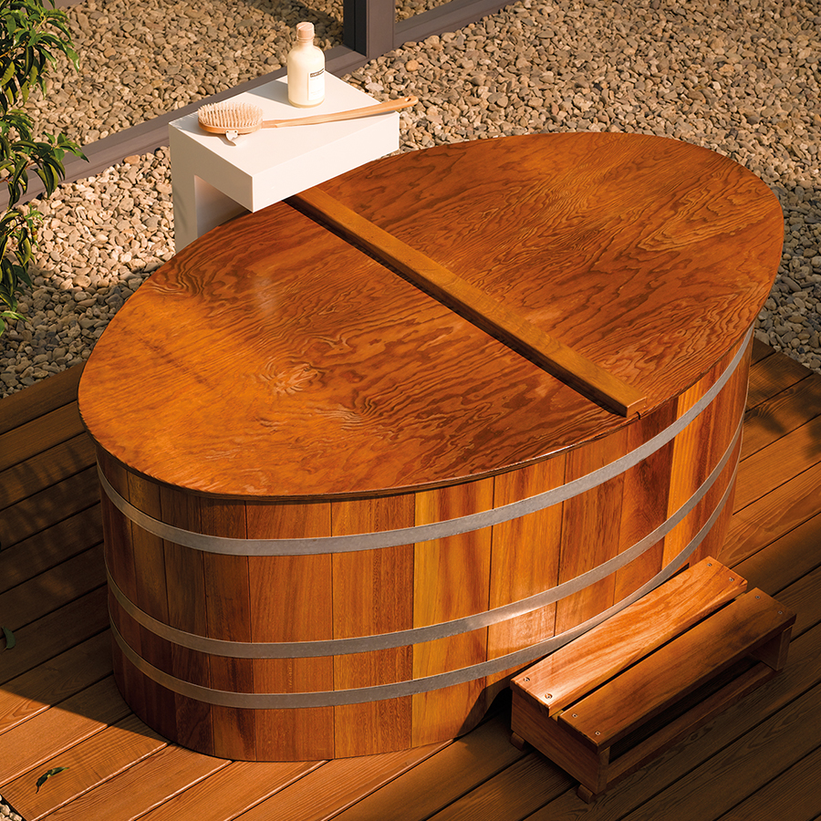 Чтобы натуральное дерево не разрушалось под воздействием УФ-излучения, купель неообходимо обработать специальным защитным лаком снаружи.