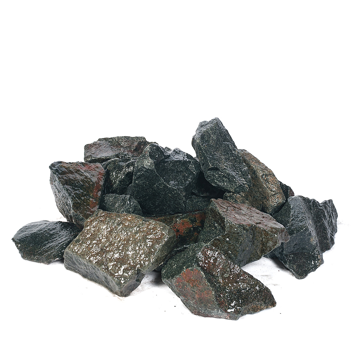 При невысокой цене он обладает всеми необходимыми свойствами камня для каменок — термостойкостью, устойчивостью к циклическим перепадам температуры, способностью быстро нагреваться и долго сохранять тепло.
