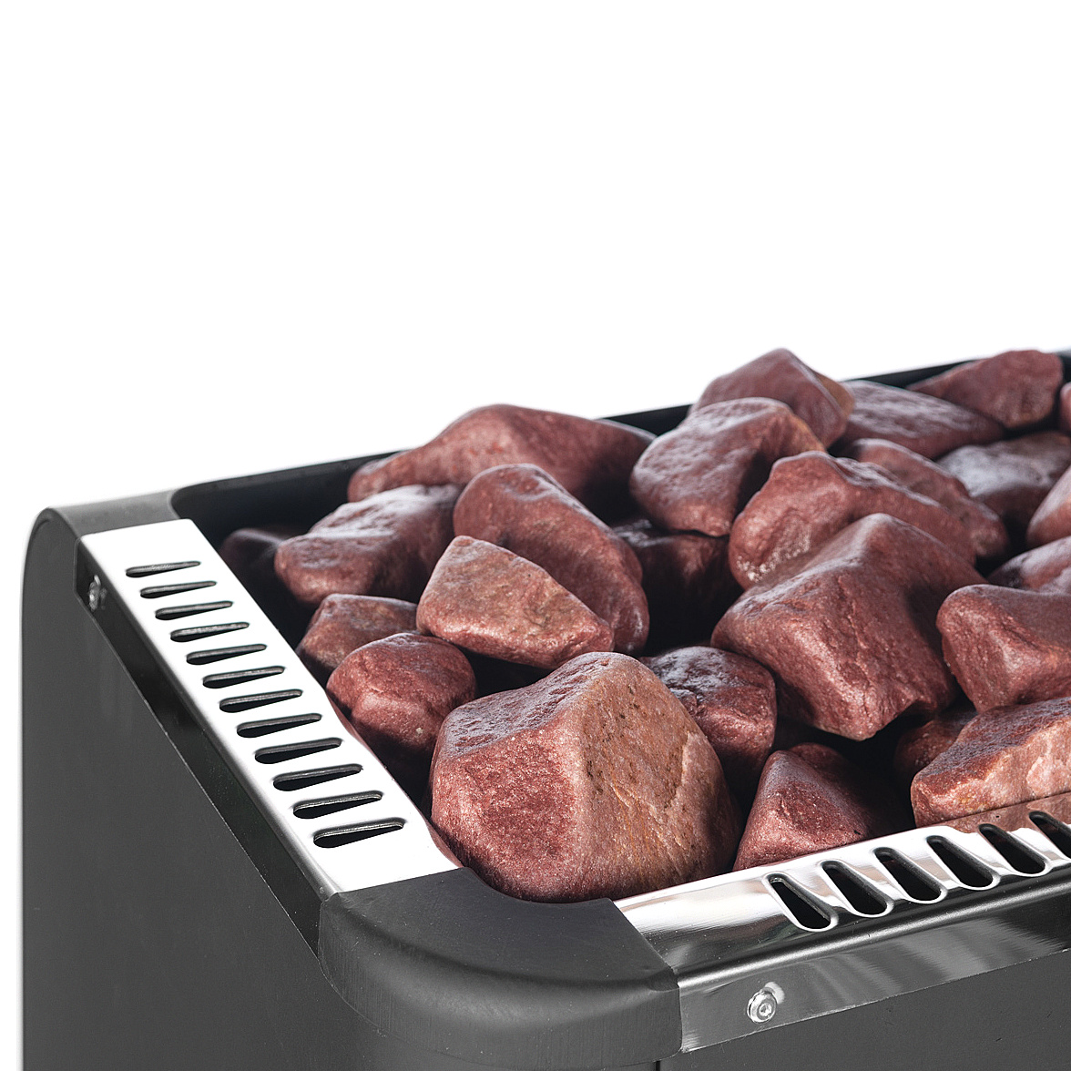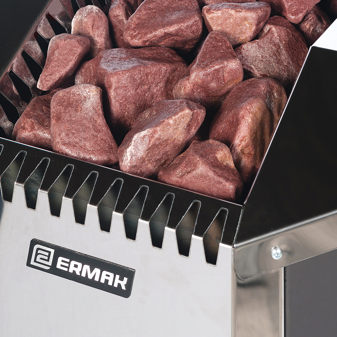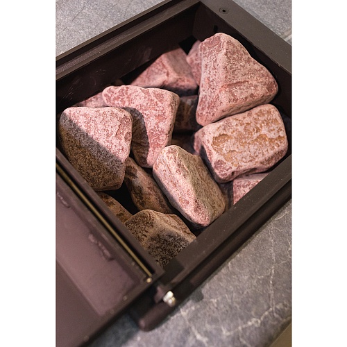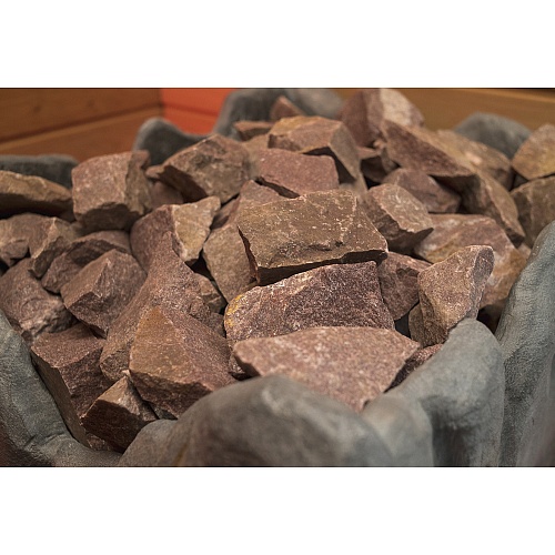 Малиновый кварцит — экологический чистый, долговечный и необычайно прочный материал. Данный минерал состоит из кварца более чем на 95%. Редчайший и дорогой минерал, добывается только в Карелии. Имеет такие свойства, как значительная теплоемкость и большая твердость, благодаря чему создает мягкий приятный пар и продолжительное время поддерживает высокую температуру. Выдерживает температуру до 1600 градусов, поэтому является подходящим материалом для каменок.