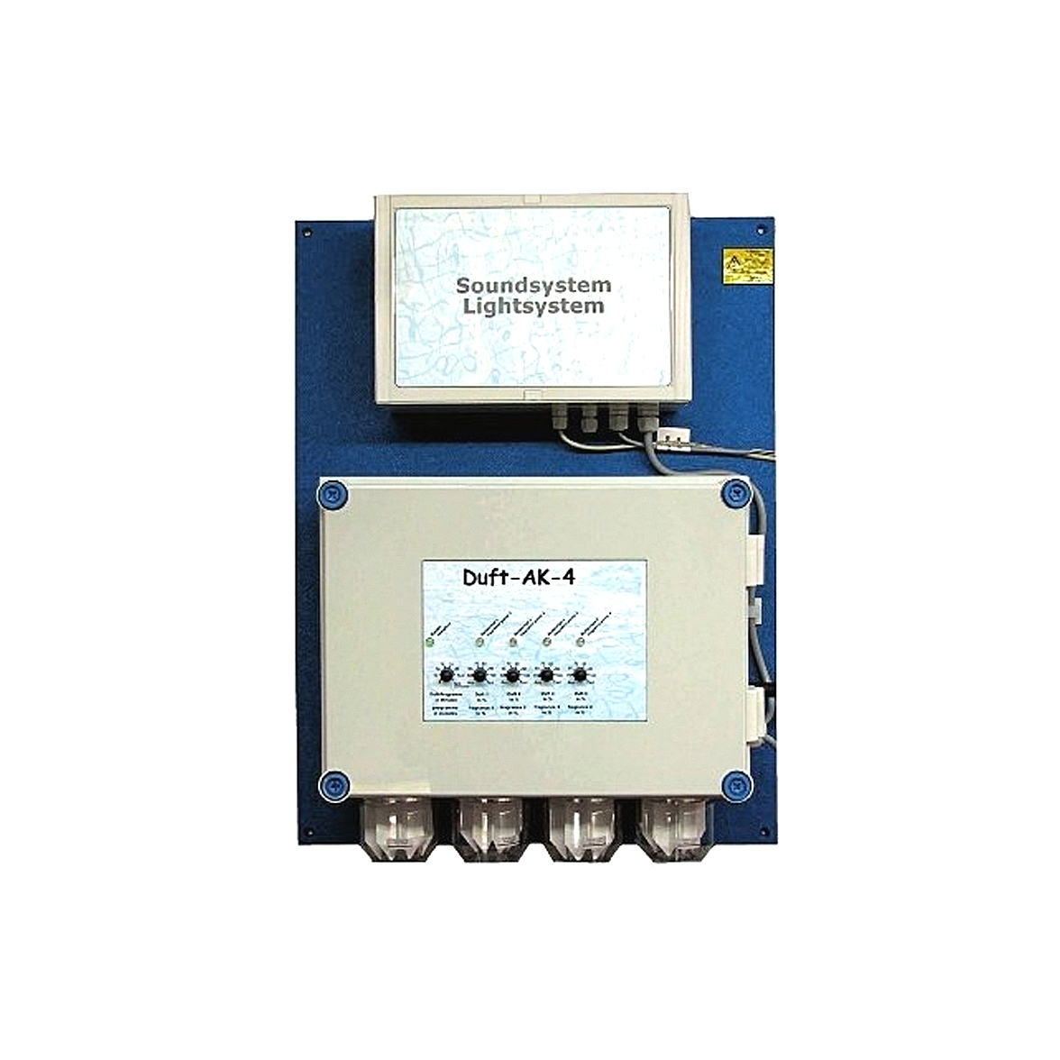 Дозирующая станция с возможностью выбора от 1 до 4 ароматических веществ. Интенсивность ароматизации регулируется по каждому запаху индивидуально. Ароматерапия — это древняя наука и искусство применения различных ароматических масел для улучшения здоровья и настроения человека. Ароматы использовались для влияния на внутреннее физическое и моральное состояние человека. Более вероятно, вы сам замечали, что запах апельсина улучшает настроение, а аромат свежезаваренного кофе — стимулирует работу мозга. DUFTDOS может использоваться в тепидариумах, калдариумах, инфракрасных саунах, предбанниках; размер помещения до 50 м ³. Оборудование устанавливается в техническом помещении. Выбор аромата можно осуществлять, находясь непосредственно внутри парной, при помощи кнопки управления. Так же возможно задать индивидуальные настройки на продолжительность работы каждого аромата на управляющем блоке. Во время распыления одного аромата, насосы других ароматов заблокированы.