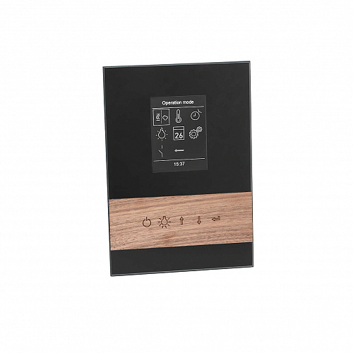 Система управления для инфракрасных саун. Пульт InfraStyle I подходит для использования как в частных так и в коммерческих ИК кабинах. Панель управления может быть установлена и внутри сауны. Небольшой жидкокристаллический дисплей обрамлен в стильный стеклянный корпус белого либо черного цвета. Кнопки управления интегрированы в панель из натурального дерева. Ограничение по времени нагрева: 6, 12часов, без ограниченияРегулировка температуры: 30 — 70 °СГабариты панели управления 200×140мм, силовой части 270×300×100мм.Материал блока управления: закаленное стекло и натуральное дерево. Мультиязычное меню: 18 языков, включая Русский. Коммутируемая мощность: 3,5 кВт