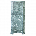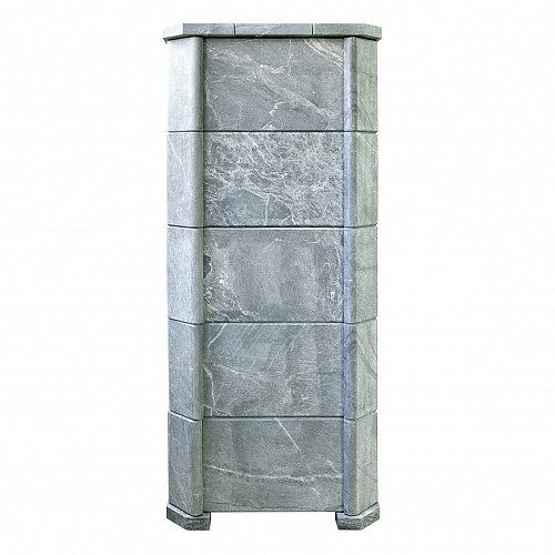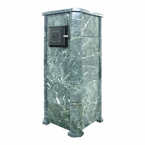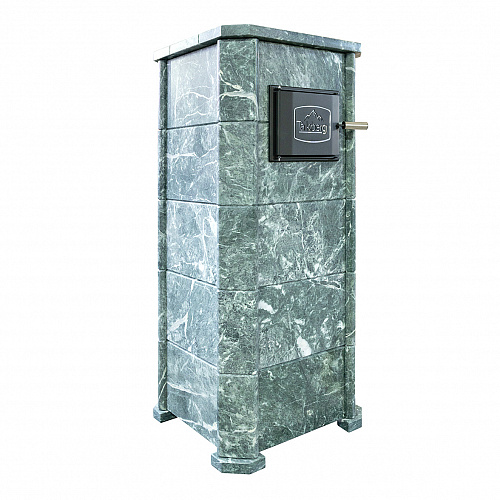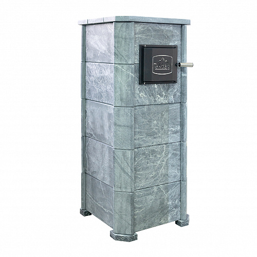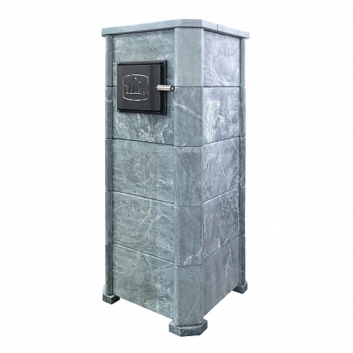 Но нагревая камни в обычной каменке мы будем одновременно нагревать и сушить окружающее пространство, и эта зависимость линейна. Для решения этой задачи мы рекомендуем применять облицовки закрытого типа, которые позволяют хорошо раскалить камни в закрытом объеме (прибавка около 100 градусов) и управлять температурой в парной открыванием дверцы. При этом тепло излучаемое от талькомагнезита гораздо мягче и комфортнее чем от раскаленного металла. Данная модель облицовки идет в комплекте с баком для камней который устанавливается на печь и через него проходит дымоход разогревая окружающие его камни. На растопку печи в облицовке вы затратите 1,5−2 часа, но даже после прогорания дров можно будет на протяжении 4−5 часов принимать банные процедуры. Талькомагнезит уникальный по своей природе камень, нагреваясь он очень медленно остывает, тем самым поддерживая температуру в парной, а камни при этом охлаждаются существенно меньше нежели в открытых печах.
