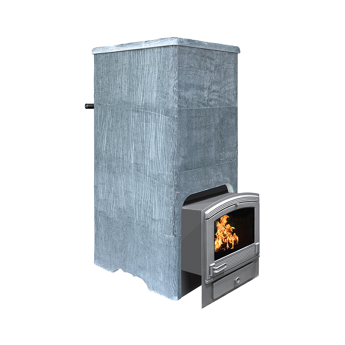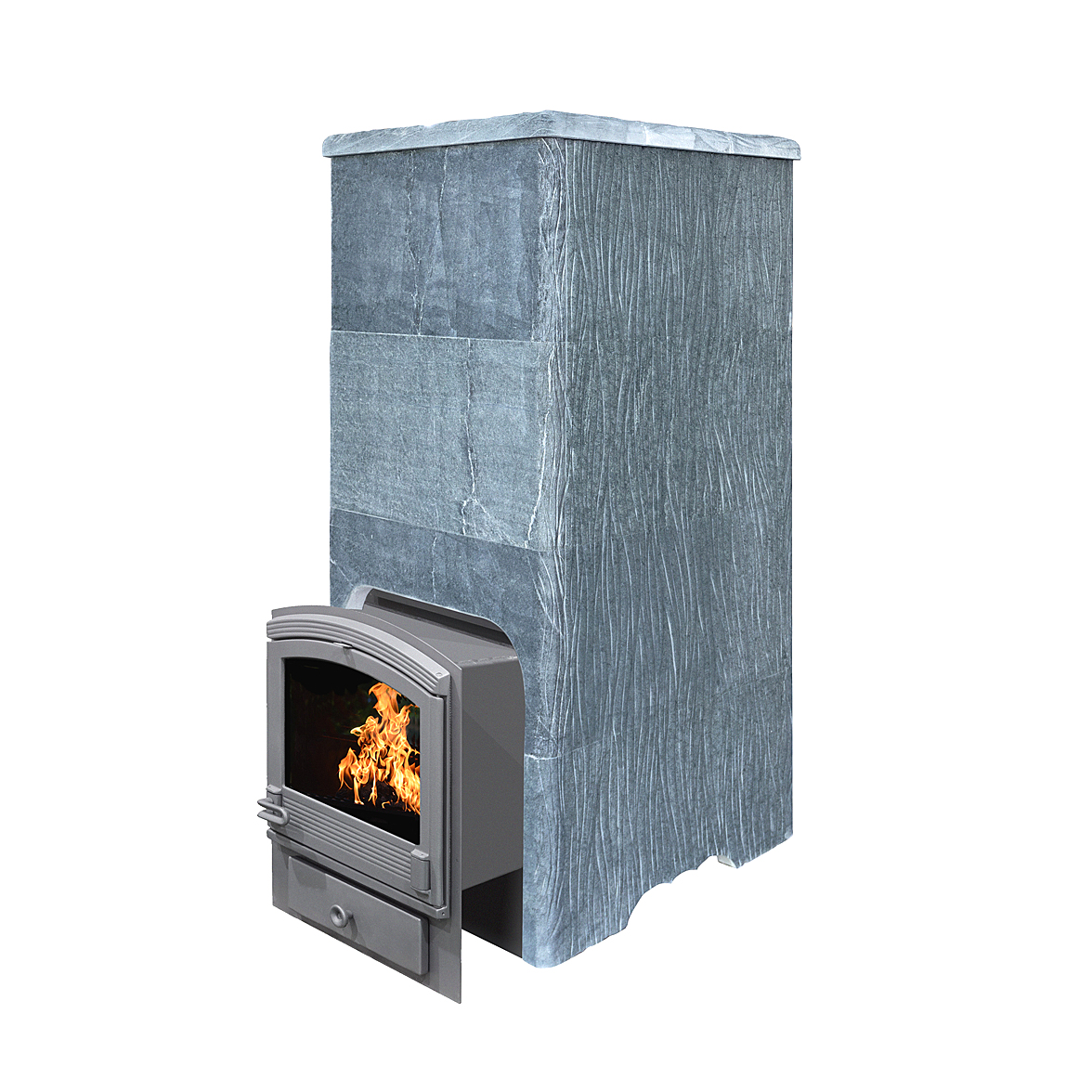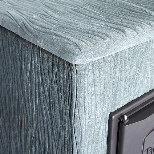 Для решения этой задачи мы рекомендуем применять облицовки закрытого типа, которые позволяют хорошо раскалить камни в закрытом объеме (прибавка около 100 градусов) и управлять температурой в парной открыванием дверцы. При этом тепло излучаемое от талькомагнезита гораздо мягче и комфортнее чем от раскаленного металла. На растопку печи в облицовке вы затратите 1,5−2 часа, но даже после прогорания дров можно будет на протяжении 4−5 часов принимать банные процедуры. Талькомагнезит уникальный по своей природе камень, нагреваясь, он очень медленно остывает, тем самым поддерживая температуру в парной, а камни при этом охлаждаются существенно меньше, нежели в открытых печах. Мы используем в производстве облицовок талькомагнезит от компании Tulikivi добытый в Финляндии.