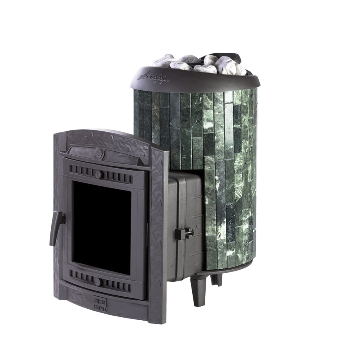 Печь отлита из цельного чугуна с каменкой из нержавеющей стали AISI 439