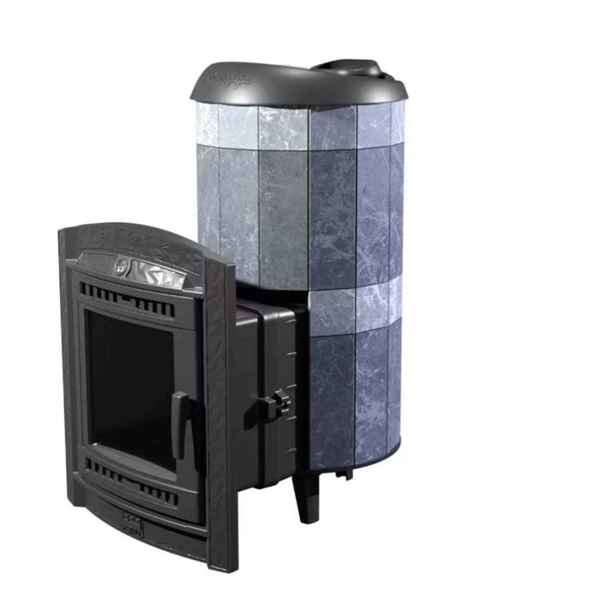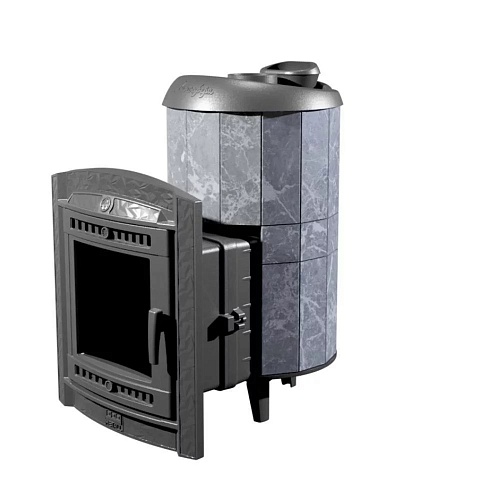 Практичная и компактная модель. Облицовка из талькохлорита по периметру внешней каменки не только обладают хорошими теплонакопительными свойствами, но и придают печи оригинальный внешний вид. Модель с усиленной каменкой.