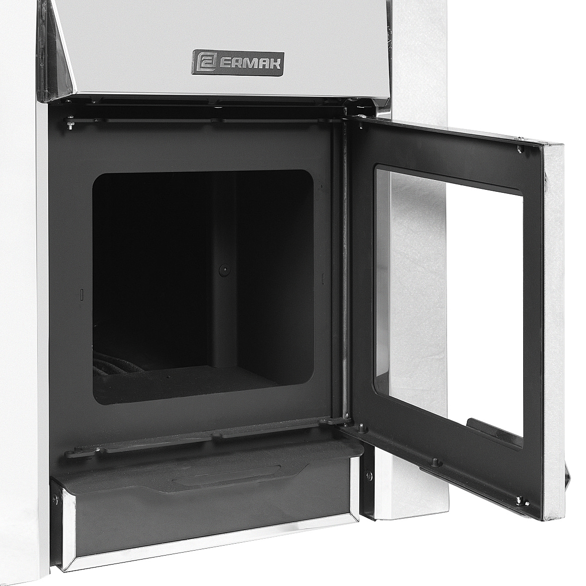 В модели ERMAK Премиум Чугун топка изготовлена из чугуна, с высокими показателями теплопроводности, устойчивости к высокой температуре и долговечности. Толщина свода топки — 10 мм.