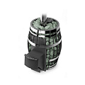 В печи предусмотрена двухступенчатая система парообразования с закрытой каменкой и клапаном-дозатором. В конструкции клапана так же использован клапан мотылькового типа, который максимально быстро пропускает порцию воды в объем первичной каменки, и еще быстрее запирается после этого. Благодаря этому практически исключен выброс пара в зоне клапана, а вся поданная вода гарантированно превращается в мелкодисперсионный легкий пар. Закрытая каменка прогревается круговым потоком пламени со всех сторон.