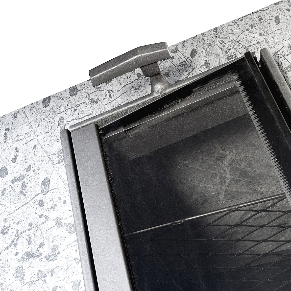 Особенностью модели является возможность топить печь из смежного помещения с использованием большого панорамного стекла. Каминная дверь обеспечивает удобство закидывания дров. Для обрамления топки можно приобрести портал, предлагаемый Tulikivi: Портал P3 или Портал P4.
