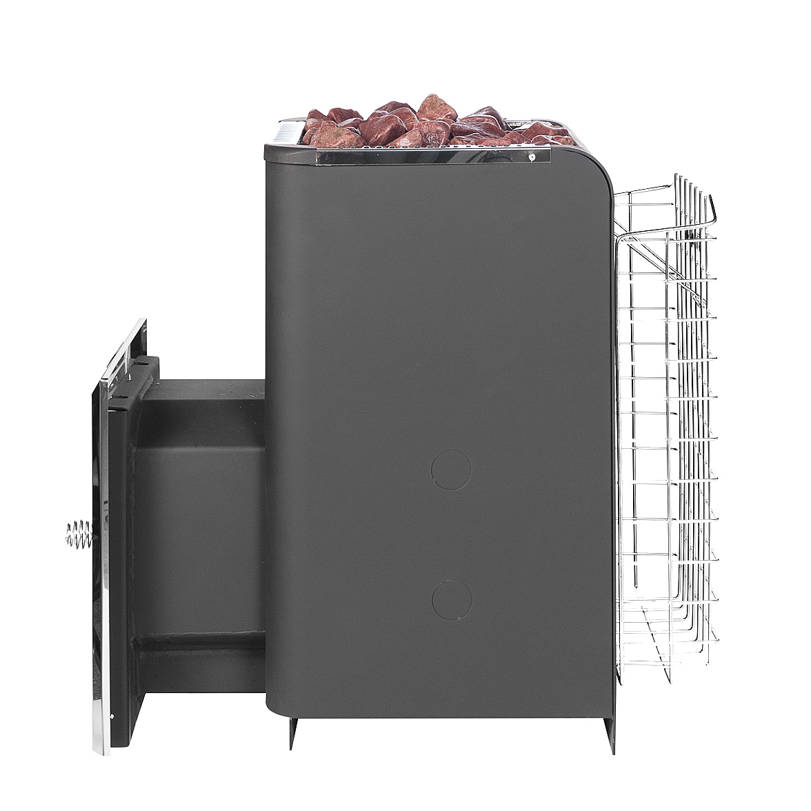 Но не только внешней стороной, но и полезным функционалом отличается сетка-каменка — она защищает от резкого инфракрасного излучения задней стенки и позволяет аккумулировать тепло, а это немаловажно, если одними из важных элементов являются удовольствие и комфорт. Камни нагреваются, как за счет непосредственного нагрева, так за счет конвективных потоков воздуха, проходящих между стенками опции и печи.