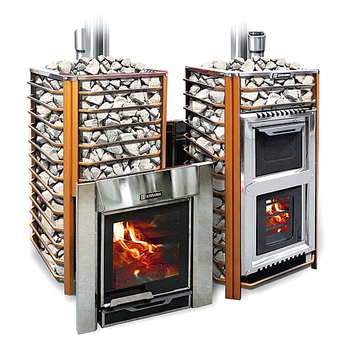 Банная печь с большой загрузкой камней, что обеспечивает длительную отдачу тепла. Применение закрытой каменки и опций позволяет создать любой климат в парной (русская баня, финская сауна).