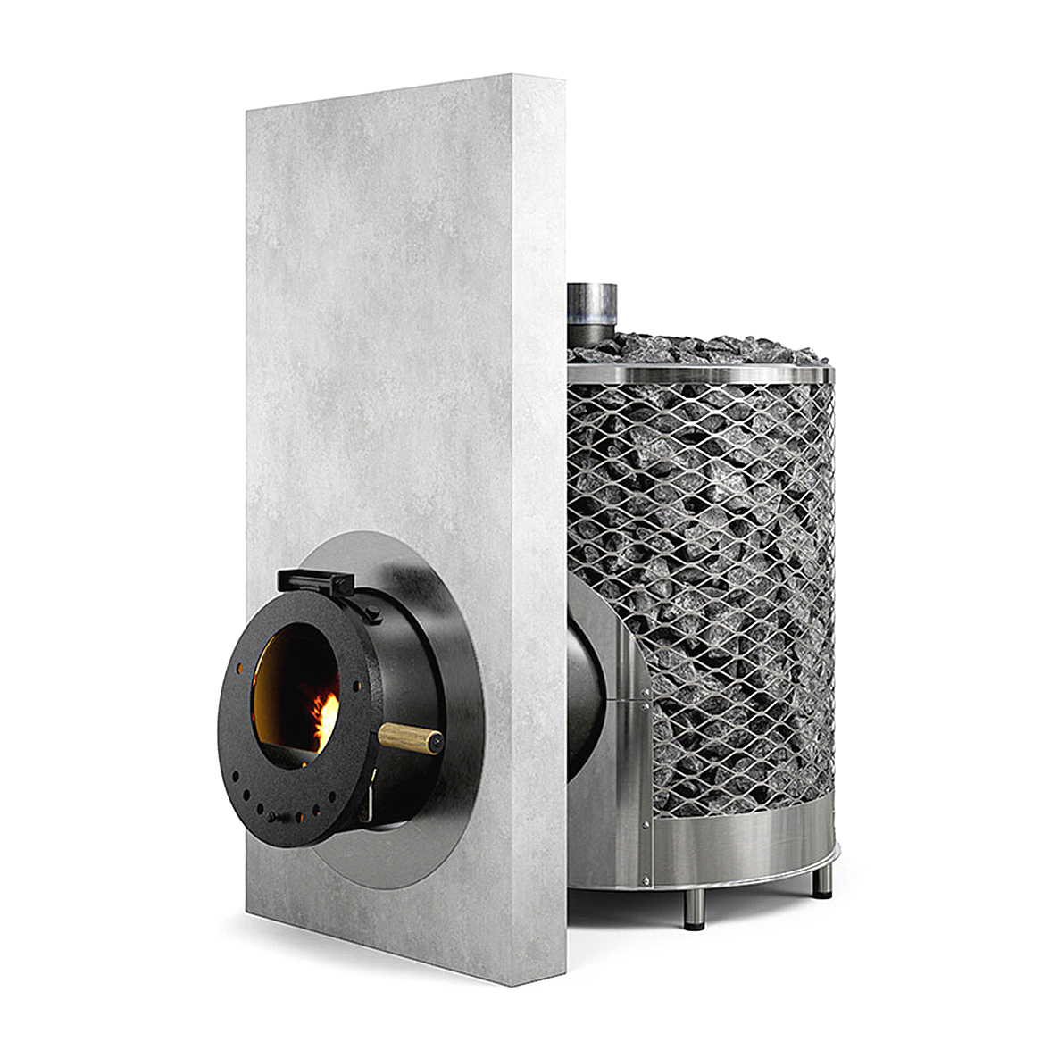 Дровяная печь IKI SL — модификация классической серии с возможностью вывести топку через стену. Сауна останется чистой, потому что загрузка дров происходит из соседнего помещения.
