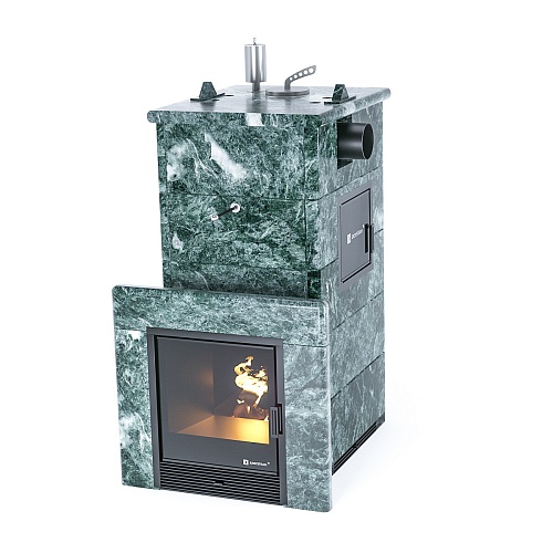 Для облицовки печи Вы можете использовать печной кирпич или выбрать готовый вариант облицовки из натурального природного камня змеевика или талькохлорита (см. раздел Облицовки).