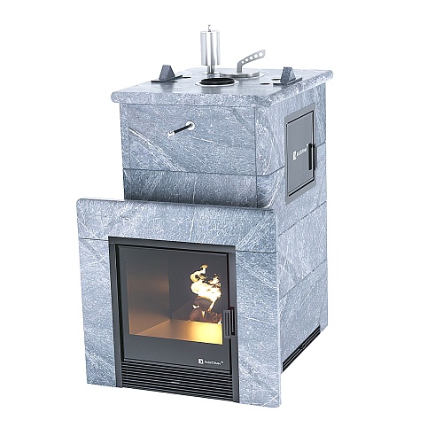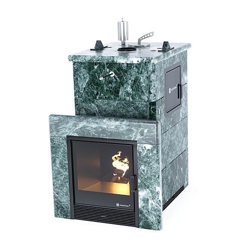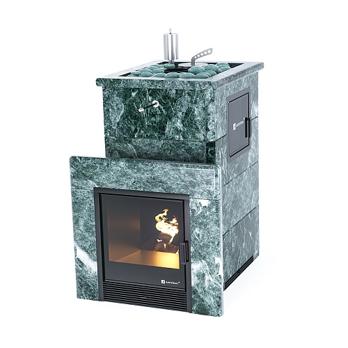 ИзиСтим Сочи М2 в облицовке 3-х сторонняя змеевик, правая дверца, открытый верх, верх. дым.